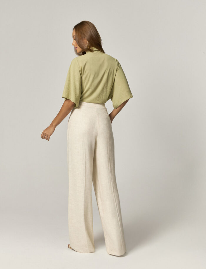 R$ 593,90 até 8x* sem jurosCalca Pantalona Com Botao Quadrado