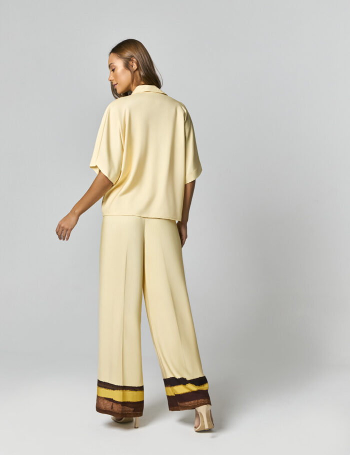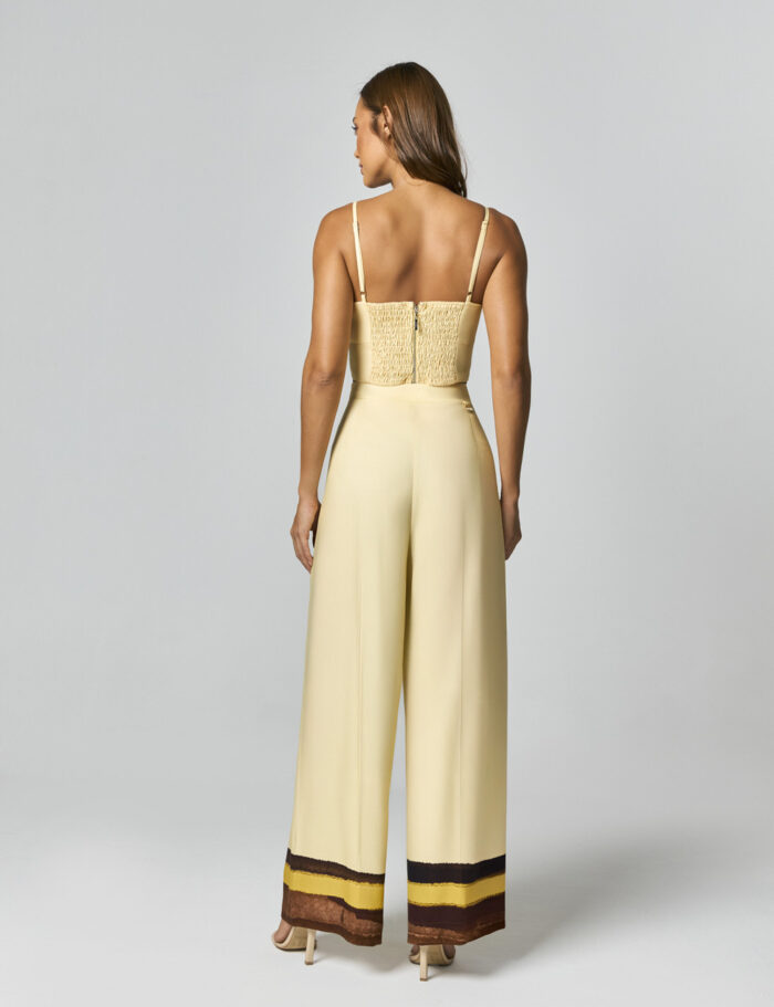 R$ 307,90 até 8x* sem jurosCalca Pantalona Estampada Com Barrado