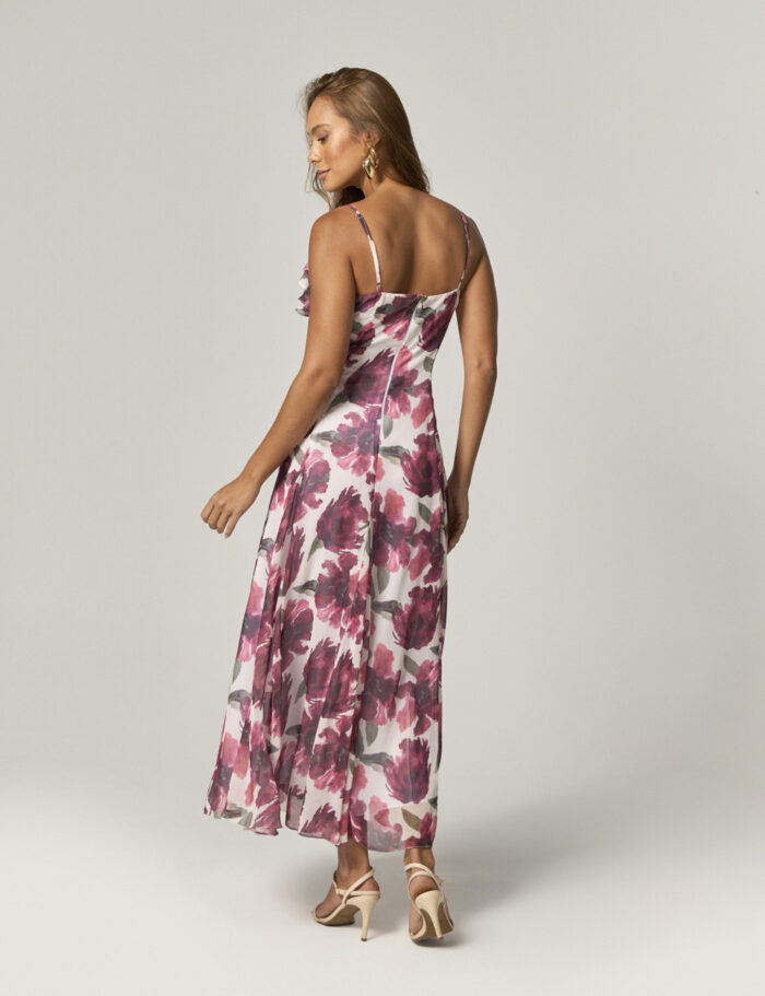 R$ 439,90 até 8x* sem jurosVestido Midi Estampado Com Babados