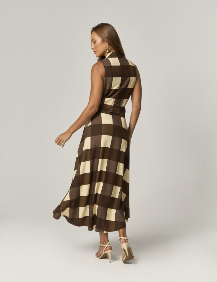 R$ 769,90 até 8x* sem jurosVestido Midi Estampado Xadrez Com Detalhe Cinto