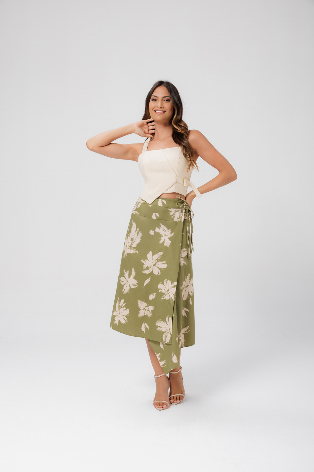 Blusa Cropped Com Recortes E Detalhe Fivela