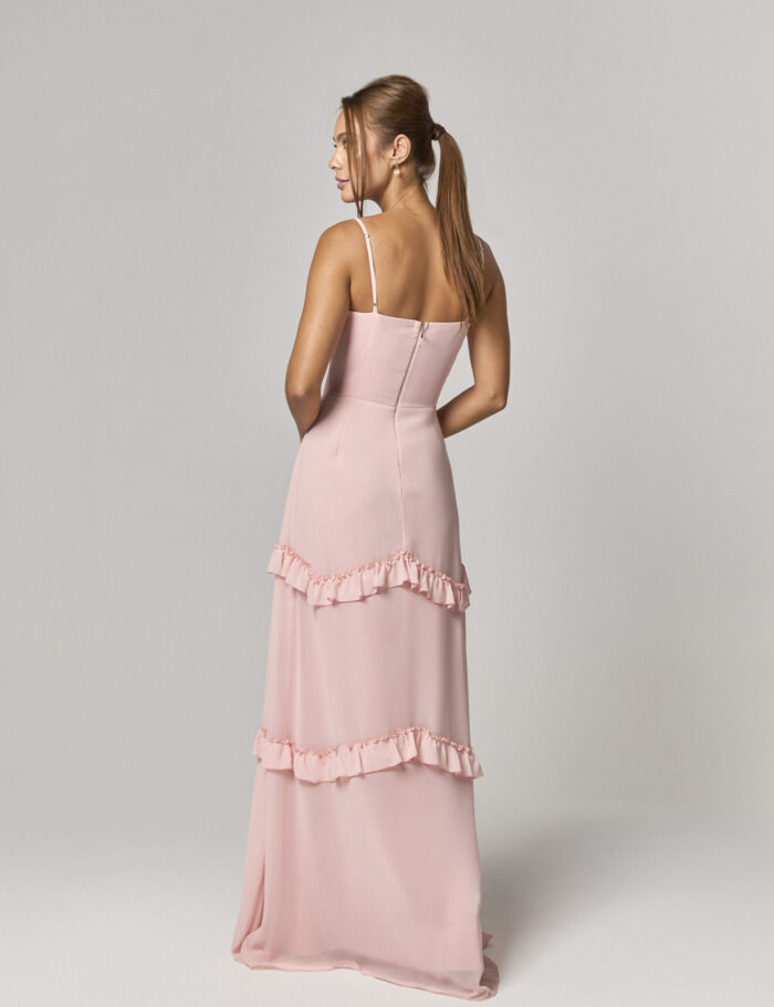 Vestido em tecido de fibra artificial com elastano, em modelagem curta e caimento levemente ajustado ao corpo. Possui fechamento por zíper na parte traseira e detalhes de recorte nas costas e aplicação de aviamentos exclusivos da coleção.