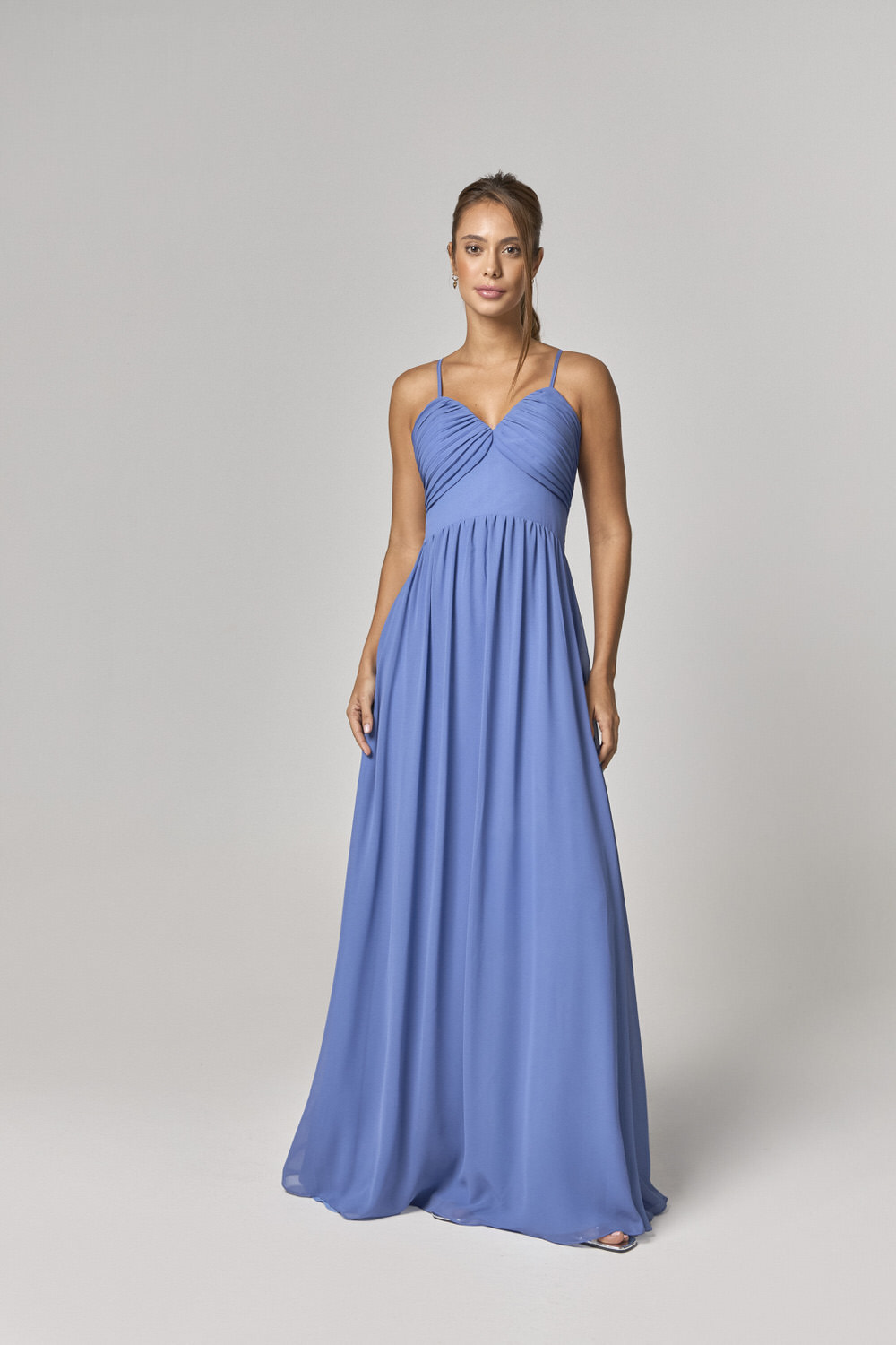 Vestido Longo Detalhe Busto Plissado Com Capa