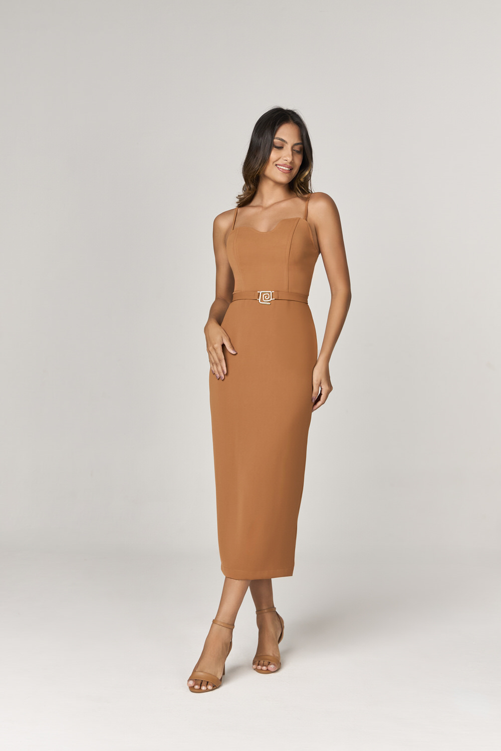 Descubra a elegância do Vestido Midi com Detalhe Fivela, uma peça que combina estilo e sofisticação em uma modelagem perfeita. Com comprimento midi e modelagem reta, este vestido realça a silhueta de maneira sutil e charmosa. O decote coração e as alças finas com regulador acrescentam um toque delicado, enquanto o lastex nas costas proporciona conforto e ajuste ideal, tornando-o ideal tanto para ocasiões casuais quanto para eventos mais formais.